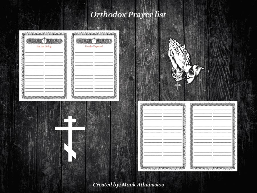 Orthodox digital prayer book, orthodox Prayer list (for the living and for the departed), Orthodox fasting with the planner, and more…